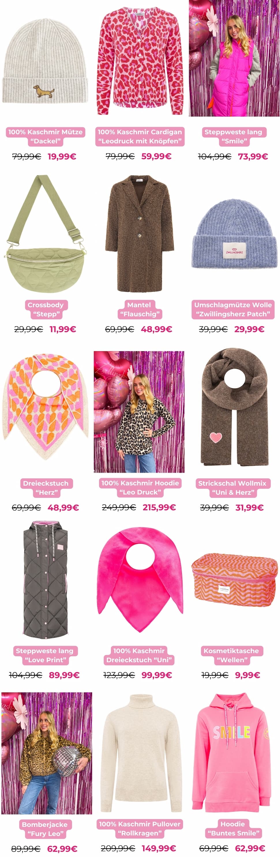 🎉 Wir feiern unseren 11. Geburtstag – und ihr feiert mit! 🎉 Vom 03.11. bis 09.11. steht bei uns alles im Zeichen unserer Geburtstagswoche! Freut euch auf tägliche Gewinnspiele auf Instagram mit tollen Markenpartnern & Bloggern, spannende Glücksrad-Aktionen in der Story und natürlich unseren großen Birthday Sale mit bis zu –70 % auf viele Lieblingsstyles. 💖 Unser exklusiver Community Hoodie ist schon in 5 Tagen verfügbar – also unbedingt vormerken! Und wer in Hamburg ist: Am Samstag steigt unsere exklusive Birthday Sale Party – sichere dir jetzt dein Last-Minute-Ticket und sei live dabei! 🥂✨ | | Ich wünschen dir viel Spaß beim Shoppen! 🥰 | | Zwillingsherz GmbH Modering 3 Hamburg, 22457 Telefon Mo. - Do.: 09:00 - 12:00 & 14:00 - 16:00 Uhr Ust.-IDNr.: DE296401601 Handelsregister: Amtsgericht Hamburg: HRB 133330 Geschäftsführer: Jonas Kölln, Justus Kölln © 2025 | All rights reserved Du möchtest keine E-Mails mehr von uns erhalten? |