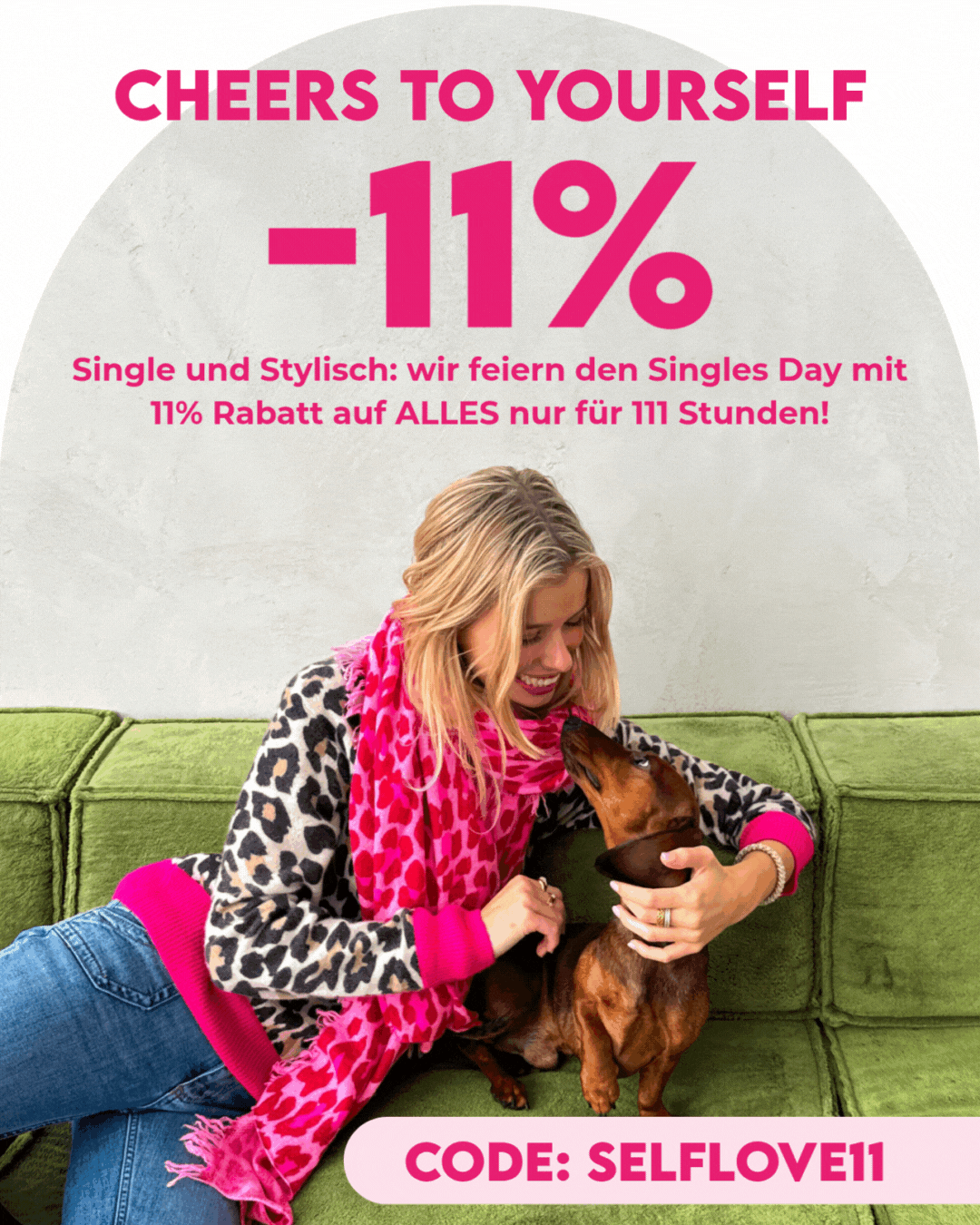 Happy Singles Day! 💖 Heute dreht sich alles um dich! 🥂 Feiere den Singles Day mit -11 % Rabatt auf ALLES* – ganze 111 Stunden lang. Shoppe unsere beliebtesten Bestseller und schönsten Neuheiten und gönn dir deine Lieblingsstyles. Einfach Code SELFLOVE11 im Checkout einlösen!