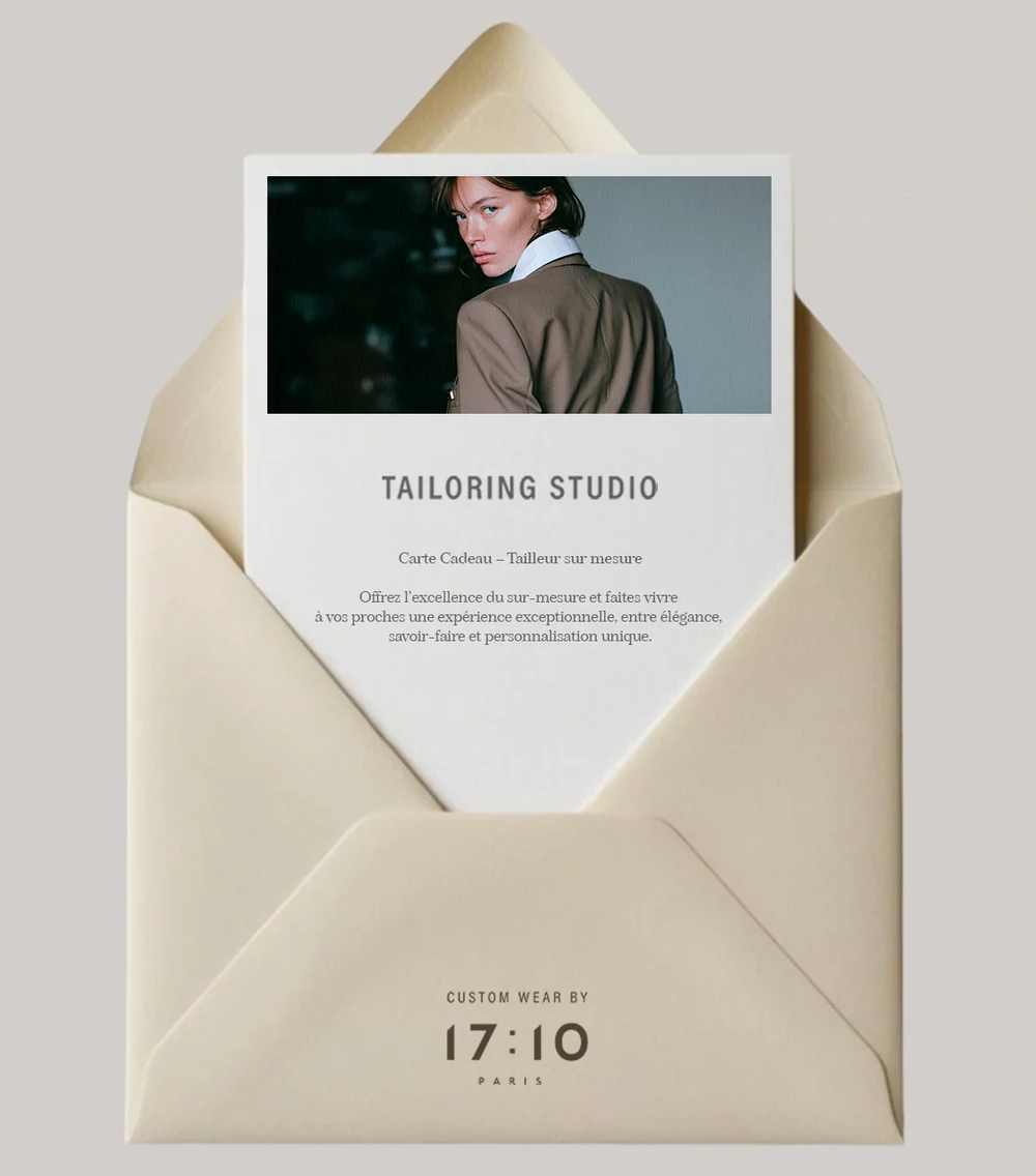 Offrir un vêtement sur-mesure, c'est offrir à une femme la possibilité de créer une pièce qui lui ressemble profondément : une veste qui affirme sa présence, un pantalon parfait qui l'accompagne au quotidien, une jupe qui sublime sa silhouette, ou un tailleur qui devient son armure moderne. | | | | |