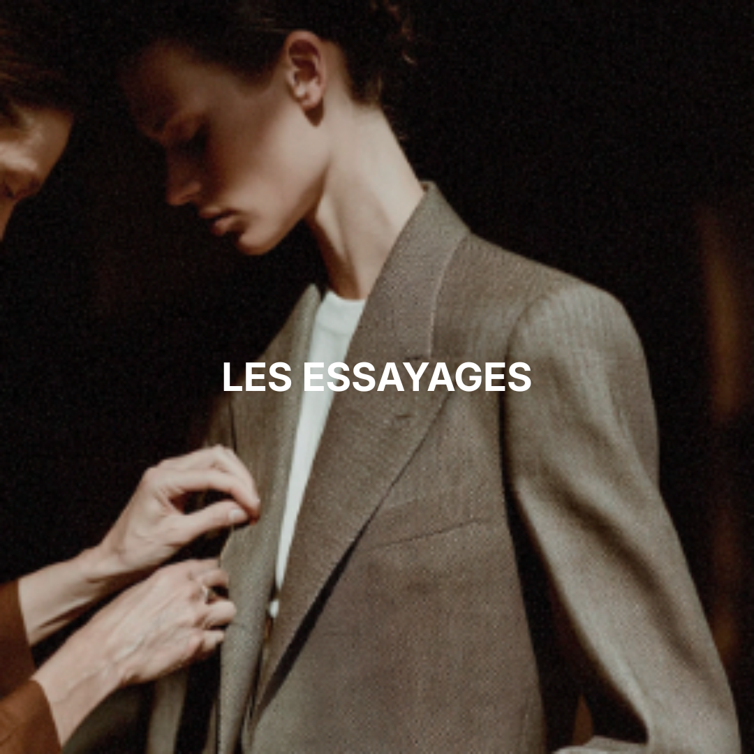 | | | VESTE À partir de 640€ | GILET À partir de 290€ | | | | | | | PANTALON & JUPE À partir de 280€ | COSTUME 2 PIÉCES À partir de 890€ | COSTUME 3 PIÉCES À partir de 1170€ | | | BIEN PLUS QU'UN PRÉSENT : UNE EXPÉRIENCE